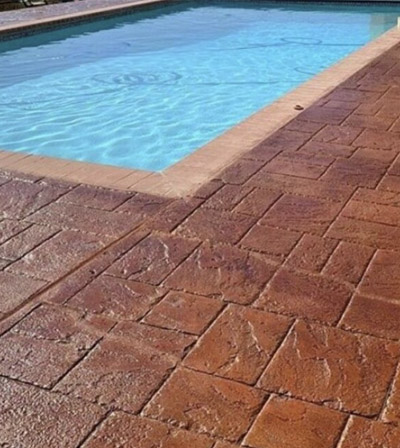 Concrete stain is a good choice for staining pool decks because it is durable and resistant to water and chemicals.